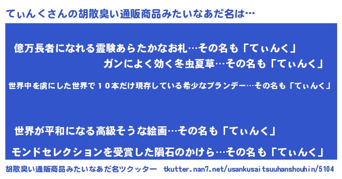 てぃんくさんの胡散臭い通販商品みたいなあだ名をツクッター!