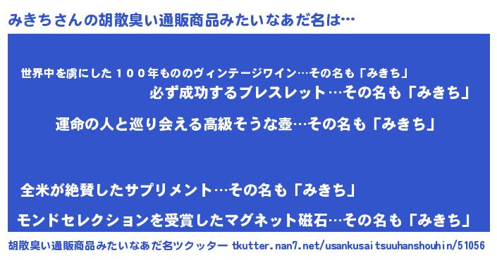 | 意味不明あだ名 | 『みきちフォーエバー』『ペロリンみきち』 |