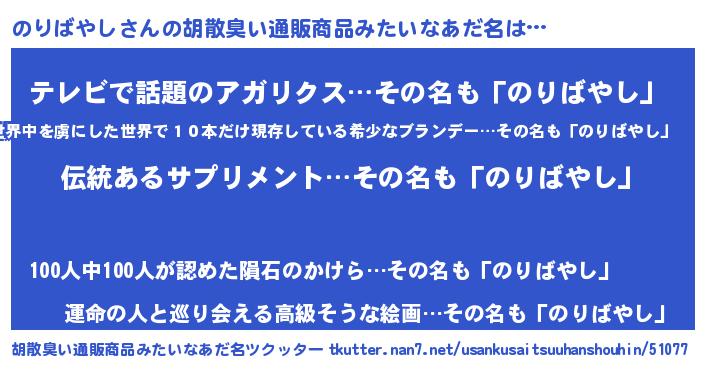 のりばやしさんの胡散臭い通販商品みたいなあだ名をツクッター!