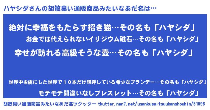 | ポケモン風あだ名 | 『ハヤシダネ』『ハヤゴンZ』 |