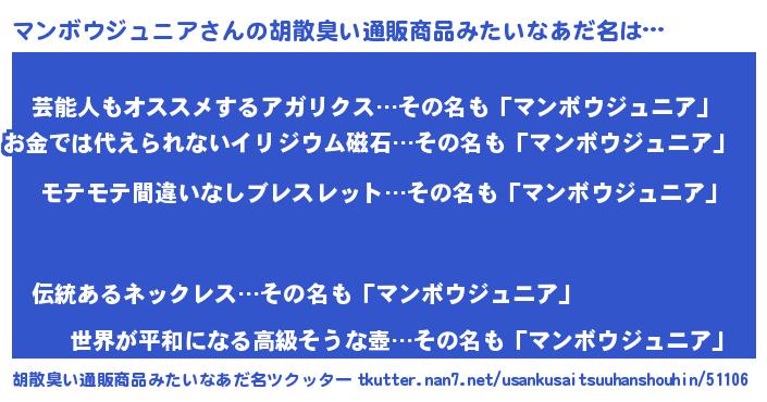 | ヘコむあだ名 | 『マンにー』『豆乳』『マン太郎』 |