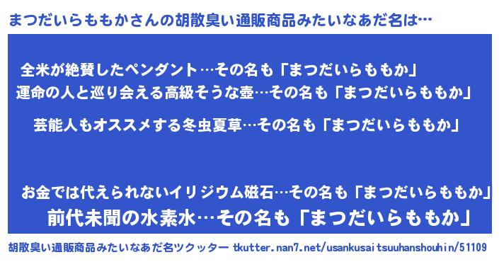 | 意味不明あだ名 | 『自称まつだいらももか』 |