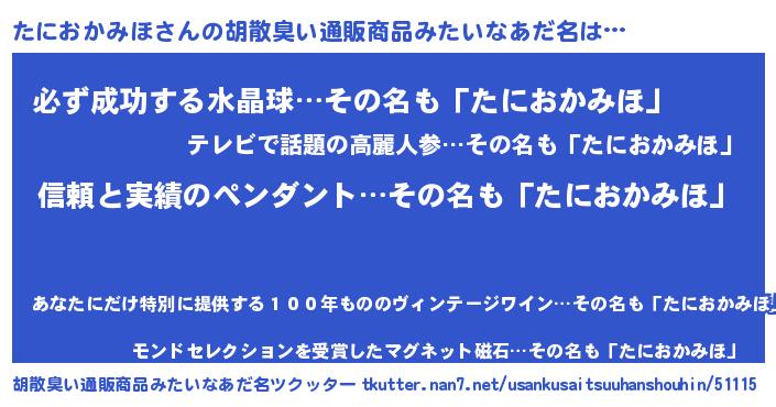 | 意味不明あだ名 | 『とにかく怪しいたにおかみほ』 |
