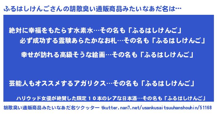 | 肩書あだ名 | 『ふるはしけんご総理大臣』 |