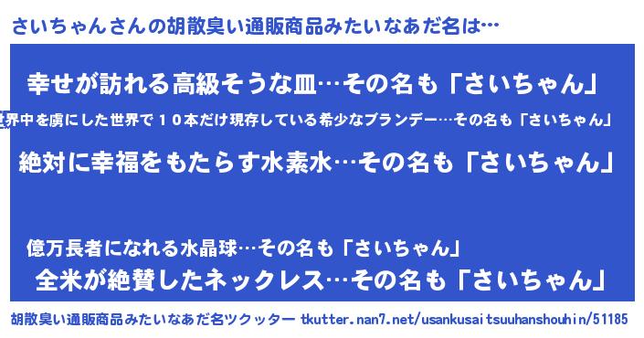 | 意味不明あだ名 | 『永久保存さいちゃん』 |