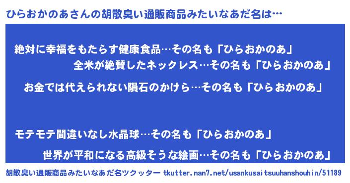 | 意味不明あだ名 | 『眠気覚ましガムひらおかのあ味』 |