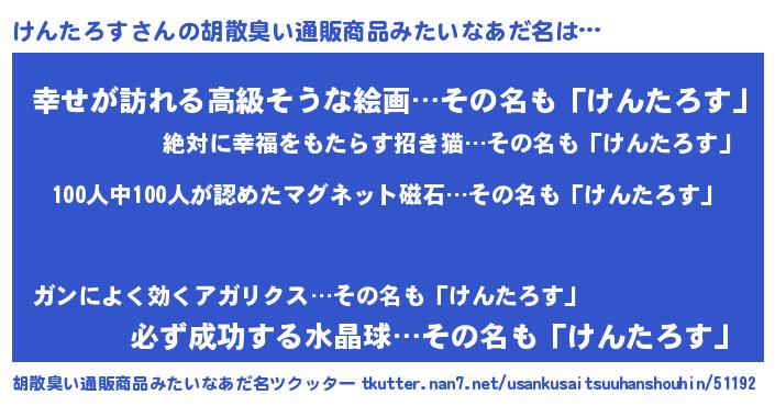 | ヘコむあだ名 | 『つくし』『けんにゅー』『けんっ子』 |