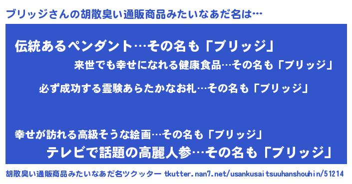| 男性向けラノベタイトル風あだ名 | 『ブリッジの憂鬱』 |