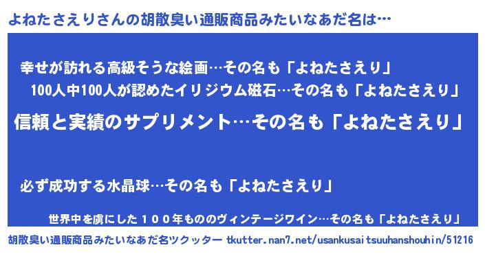 | 意味不明あだ名 | 『とにかく怪しいよねたさえり』 |