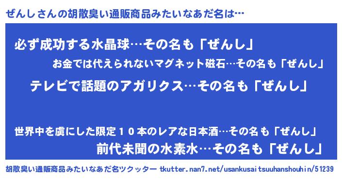| 意味不明あだ名 | 『自称ぜんし』『ペロリンぜんし』 |