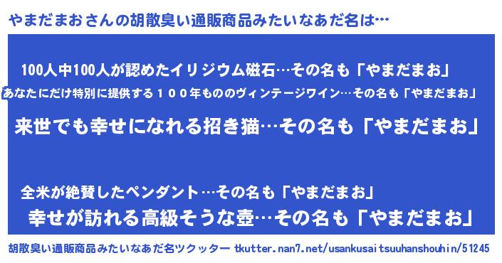 | ヘコむあだ名 | 『やまだまお(小並感)』『なまこ酢』 |