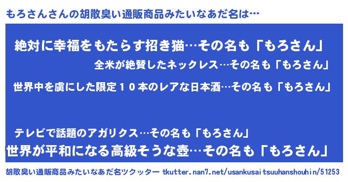 | 意味不明あだ名 | 『住所不定無職もろさん(14歳)』 |