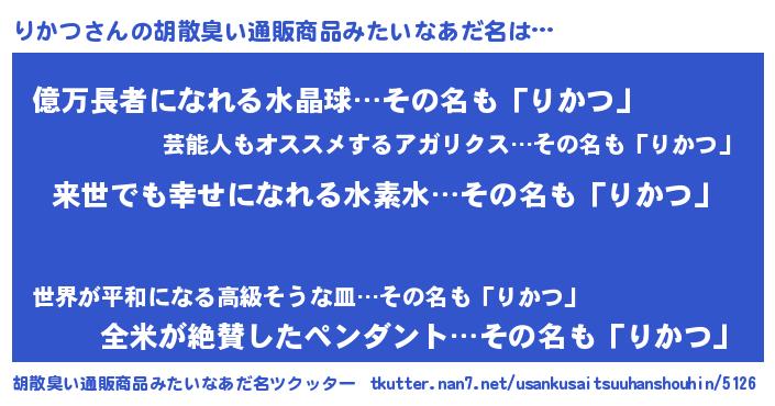 | ヘコむあだ名 | 『りかつ(遠い目)』『りかにゅー』 |