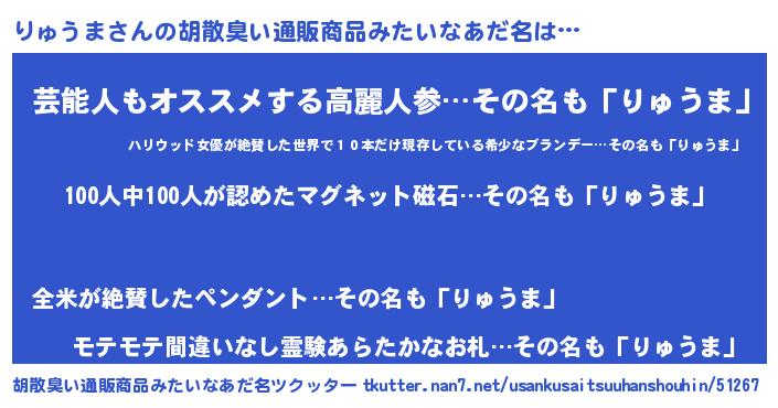 | ヒーロー風カッコイイあだ名 | 『正義の使者りゅうま』『仮面リュダー』 |