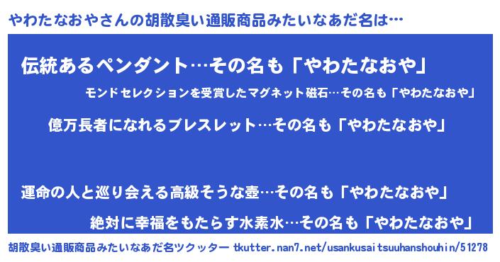 | 欧米人風あだ名 | 『やわたなおや・ステッグマイヤー』 |