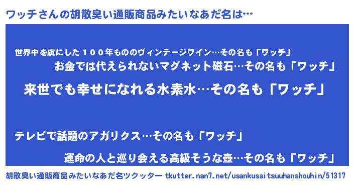 | ヘコむあだ名 | 『ワッチ(震え声)』『牛乳』 |