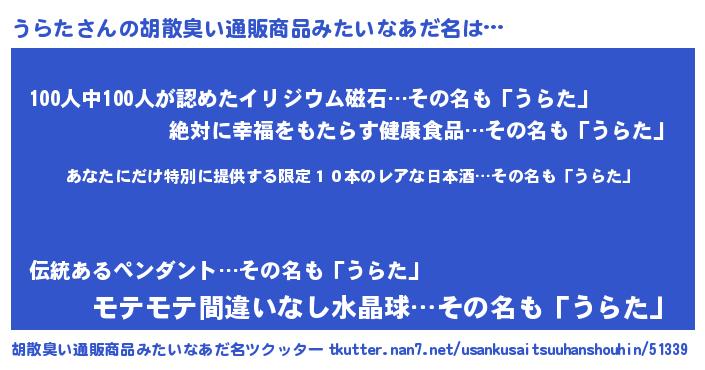 | ヘコむあだ名 | 『うらふぇ~』『うらた(笑)』 |