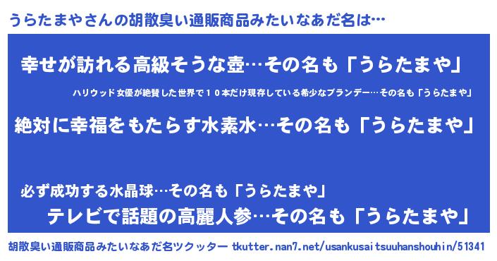 | ヘコむあだ名 | 『うらたまや(苦笑)』『牛乳』 |