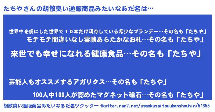 | ヘコむあだ名 | 『たちや(笑)』『たちもー』『牛乳』 |