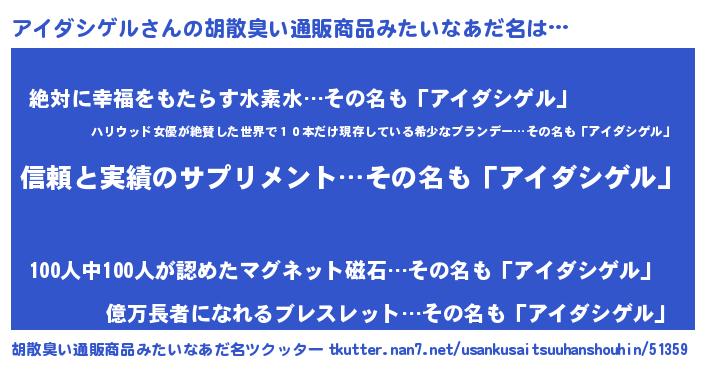| ヘコむあだ名 | 『アイお』『アイダシゲル(震え声)』 |