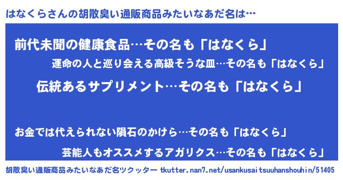 | 意味不明あだ名 | 『なめこ科はなくら属』『自称はなくら』 |