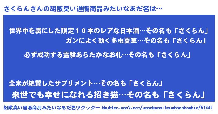 さくらんさんの胡散臭い通販商品みたいなあだ名をツクッター!