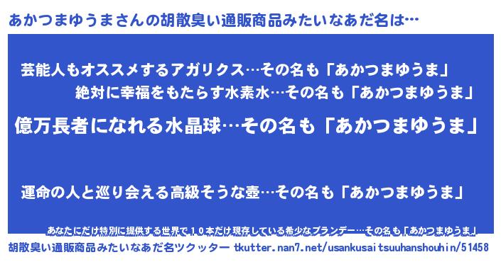 | 欧米人風あだ名 | 『マイケルあかつまゆうま』 |