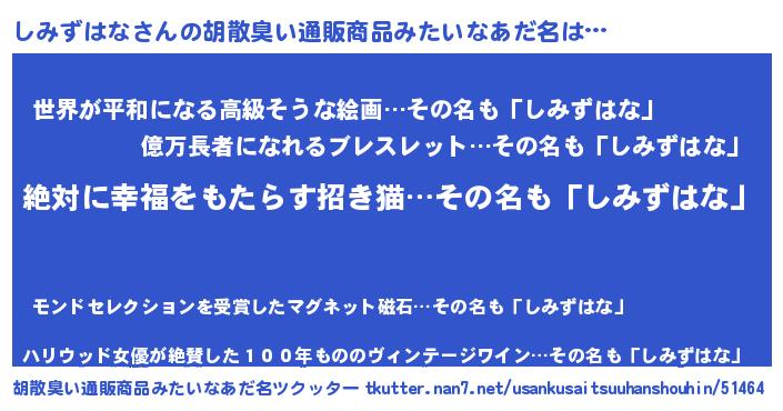 | ヘコむあだ名 | 『しみずはな(小並感)』『なまこ酢』 |