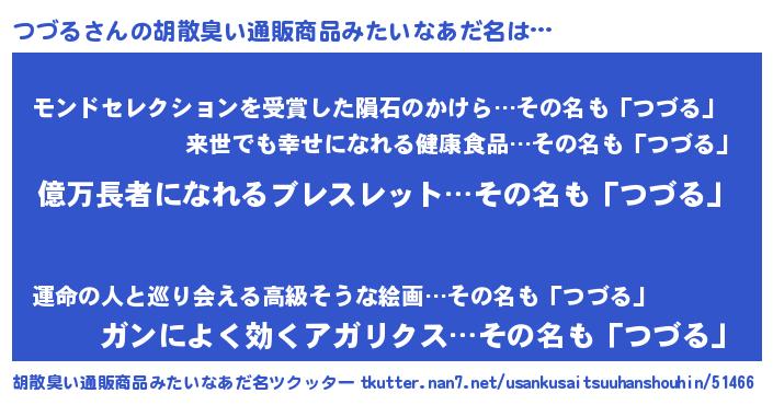 | 男性向けラノベタイトル風あだ名 | 『ツヅルアートオンライン』 |