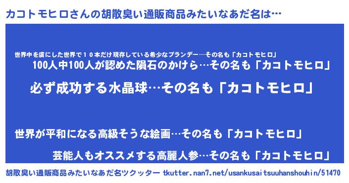 | 肩書あだ名 | 『カコトモヒロ店長』『カコトモヒロ少尉』 |