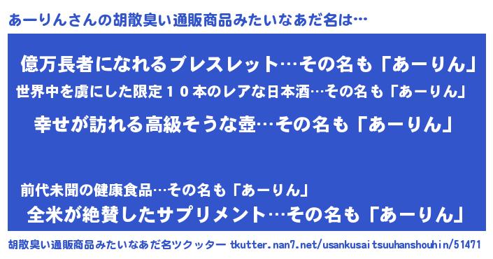 | ヒーロー風カッコイイあだ名 | 『ウルトラあーりんマン』『幻影騎士アー』 |