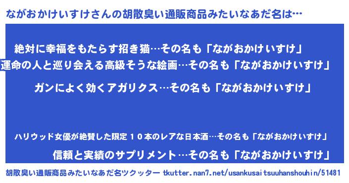 | ヘコむあだ名 | 『ながおかけいすけ(爆)』『ながお』 |