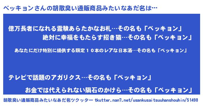 | 意味不明あだ名 | 『住所不定無職ベッキョン(56歳)』 |