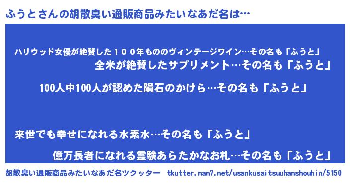 | 男性向けラノベタイトル風あだ名 | 『緋弾のフウト』『ふうとの憂鬱』 |