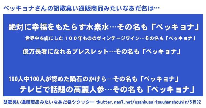 | ヒーロー風カッコイイあだ名 | 『スーパーベッキョナ』『ネオベッキョナ』 |