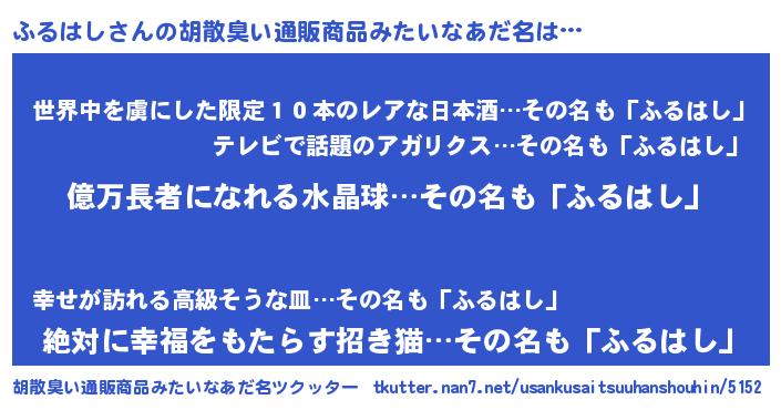 | ヘコむあだ名 | 『ふるもー』『ふるはし(笑)』 |