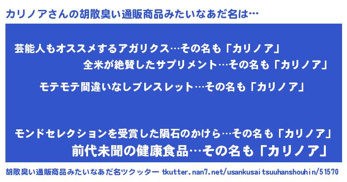| ヘコむあだ名 | 『カリふぇ~』『カリノア(笑)』 |