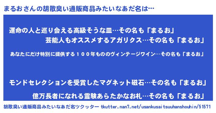 意味不明あだ名 | 『住所不定無職まるお(9歳)』『自称まるお』 |