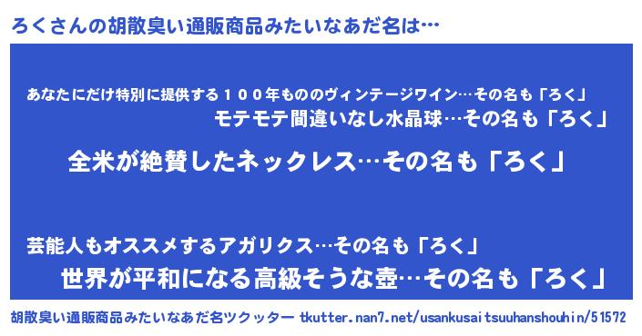 | ピコ太郎風あだ名 | 『ロク四郎』『ピロ五郎』『ロコ太郎』 |