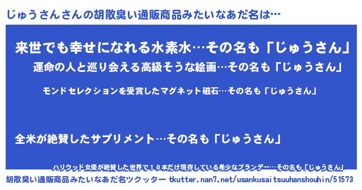 | ヘコむあだ名 | 『じゅうさん(小並感)』『豆乳』 |