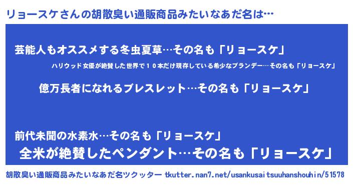 | 意味不明あだ名 | 『ペロリンリョースケ』『自称リョースケ』 |