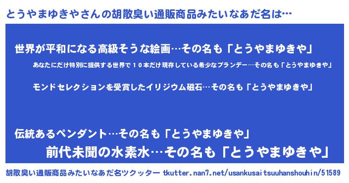 | 伝説のあだ名 | 『救世主となる占い師とうやまゆきや』 |