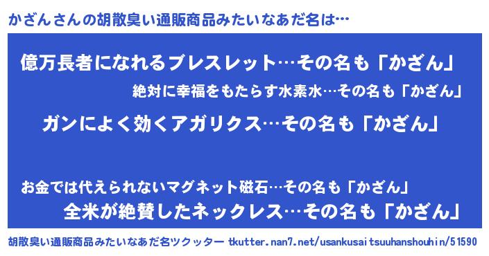 | 肩書あだ名 | 『かざん総統』『かざん店長』 |