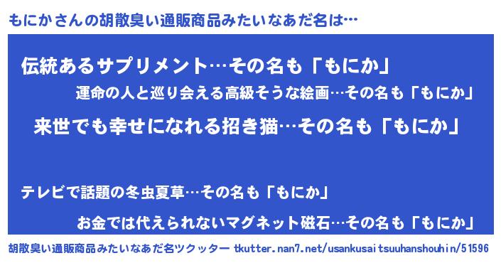 | 意味不明あだ名 | 『永久保存もにか』『もにかフォーエバー』 |