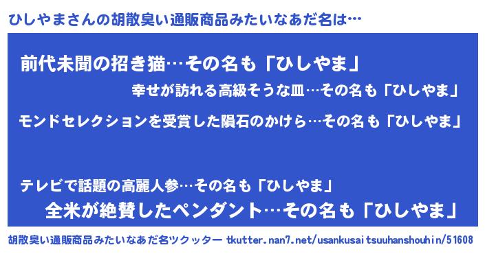 | ヒーロー風カッコイイあだ名 | 『慈愛の使者ひしやま』『ネオヒシヤマ』 |