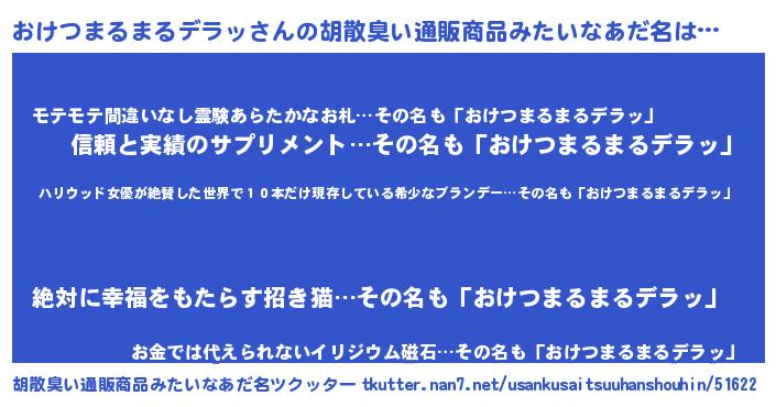 | 意味不明あだ名 | 『住所不定無職おけつまるまるデラッ(81歳)』 |