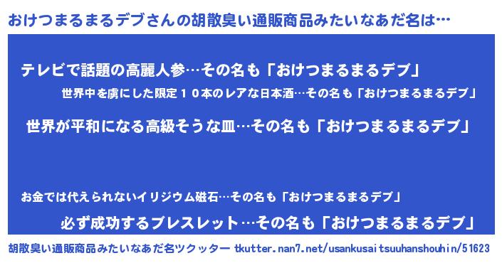 | 男性向けラノベタイトル風あだ名 | 『おけつまるまるデブに滅ぼされるだけの簡単なお仕事です』 |
