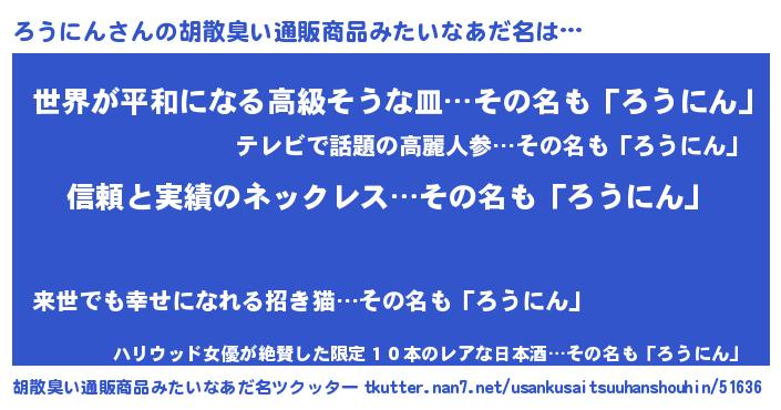 | 肩書あだ名 | 『ろうにんディレクター』『ろうにん班長』 |