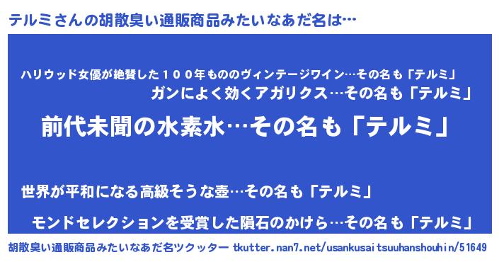 | 意味不明あだ名 | 『永久保存テルミ』『もやし科テルミ属』 |
