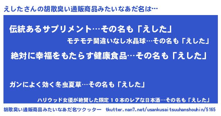 | ヘコむあだ名 | 『えした(爆)』『えしを』『酢こんぶ』 |